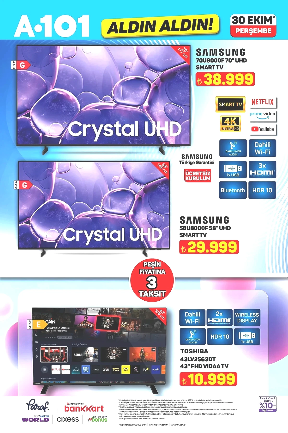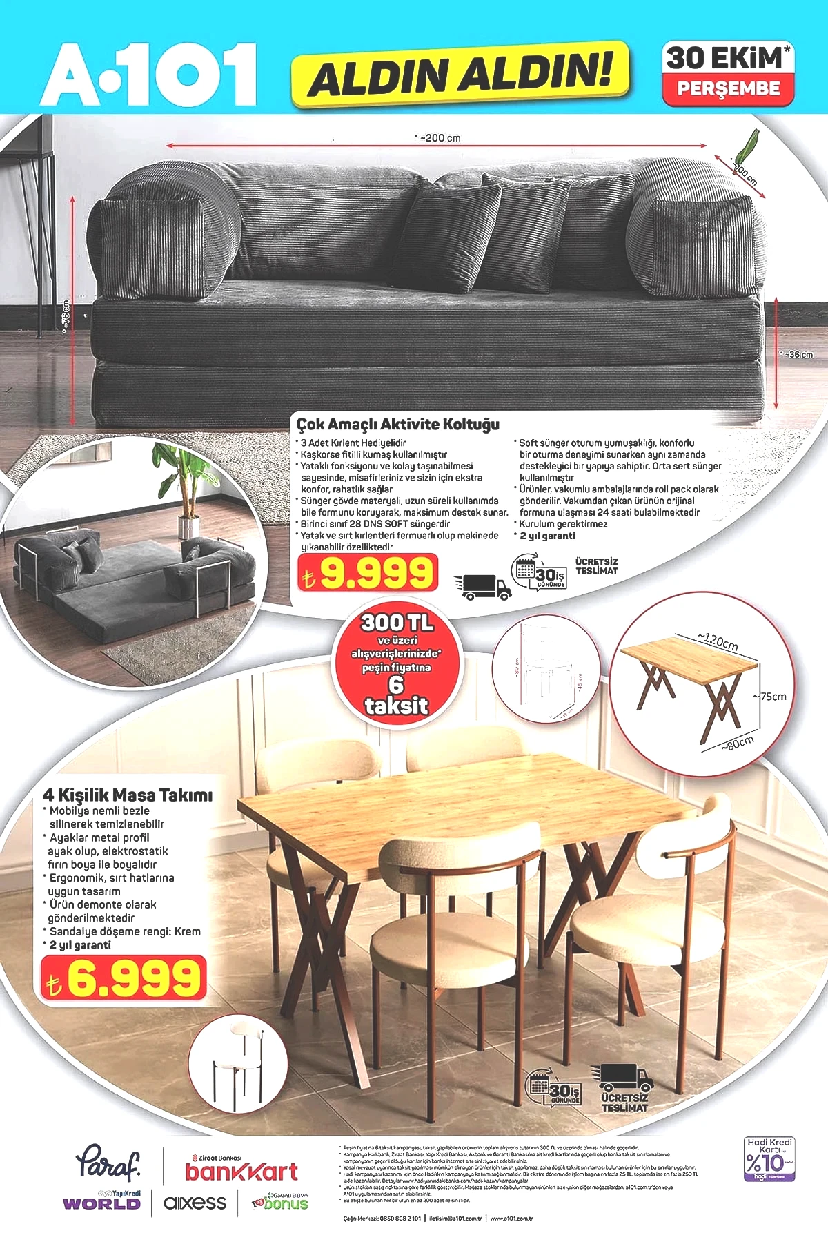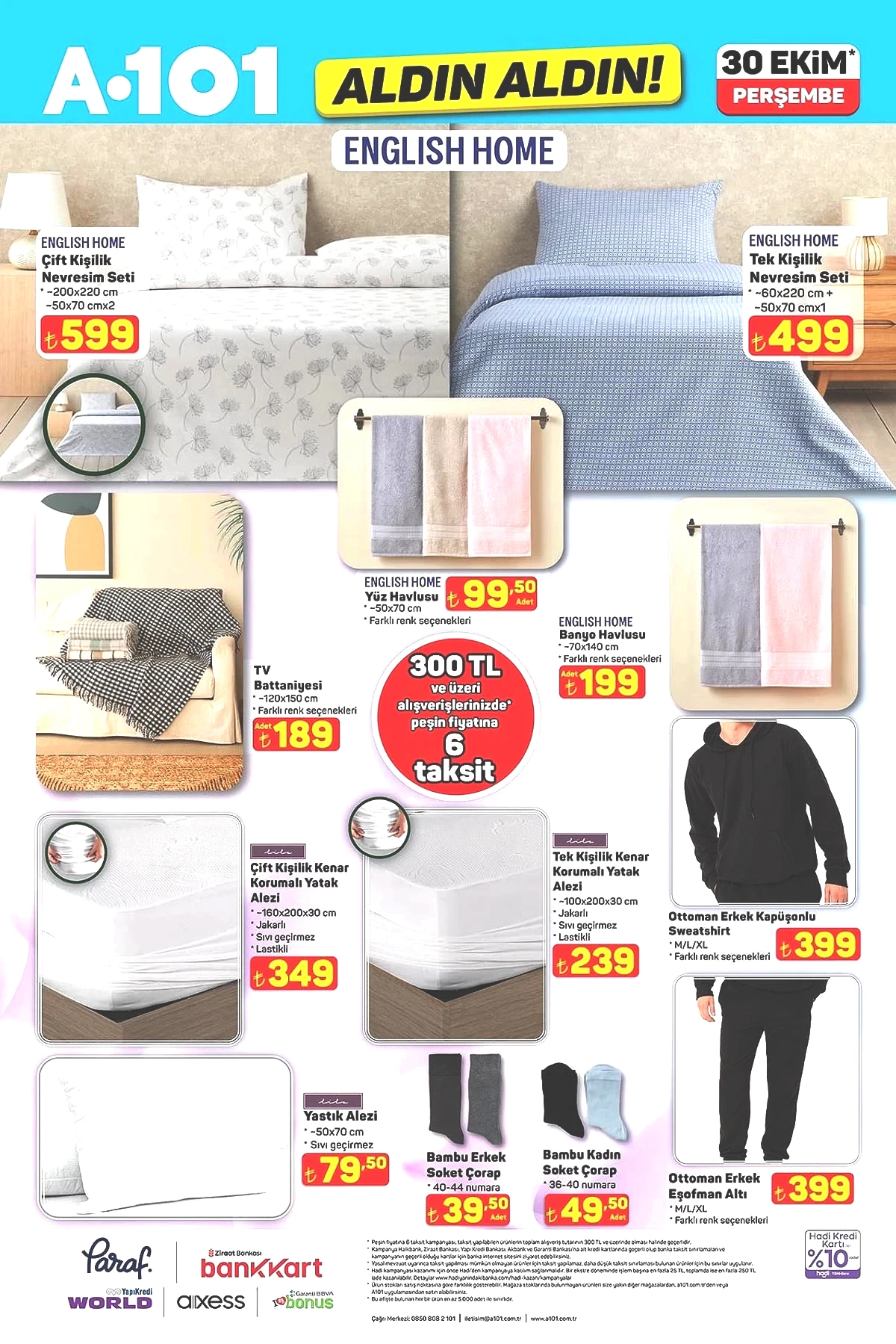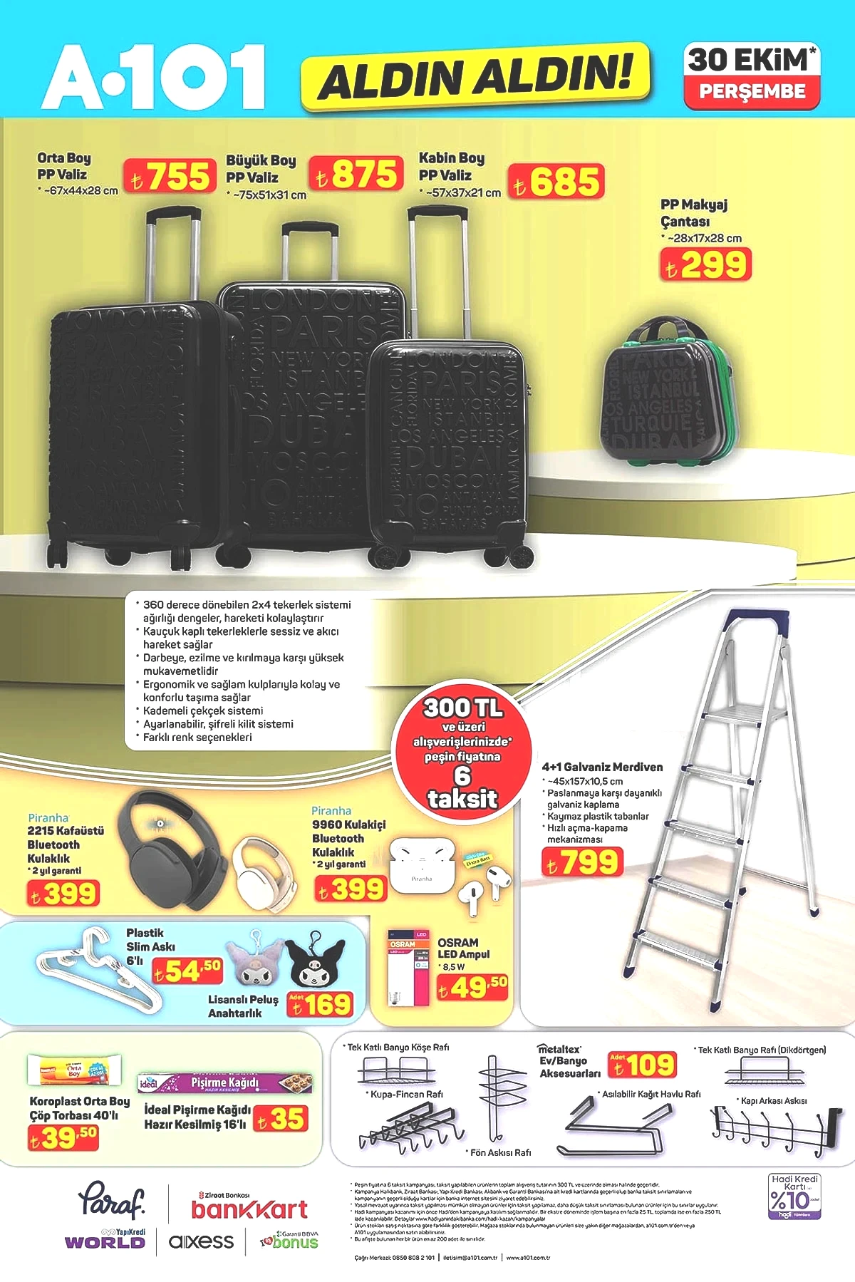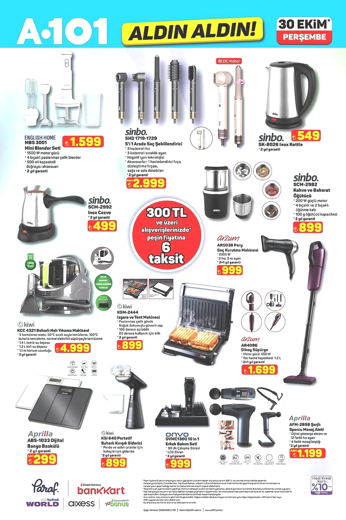 30 Ekim 2025 tarihli A101 Aldın Aldın kataloğu, sınırlı stoklarla sunulmaktadır. Kampanyaya dahil ürünler, Türkiye'deki tüm A101 mağazalarında ve A101 Online Mağaza aracılığıyla satışa çıkacak.