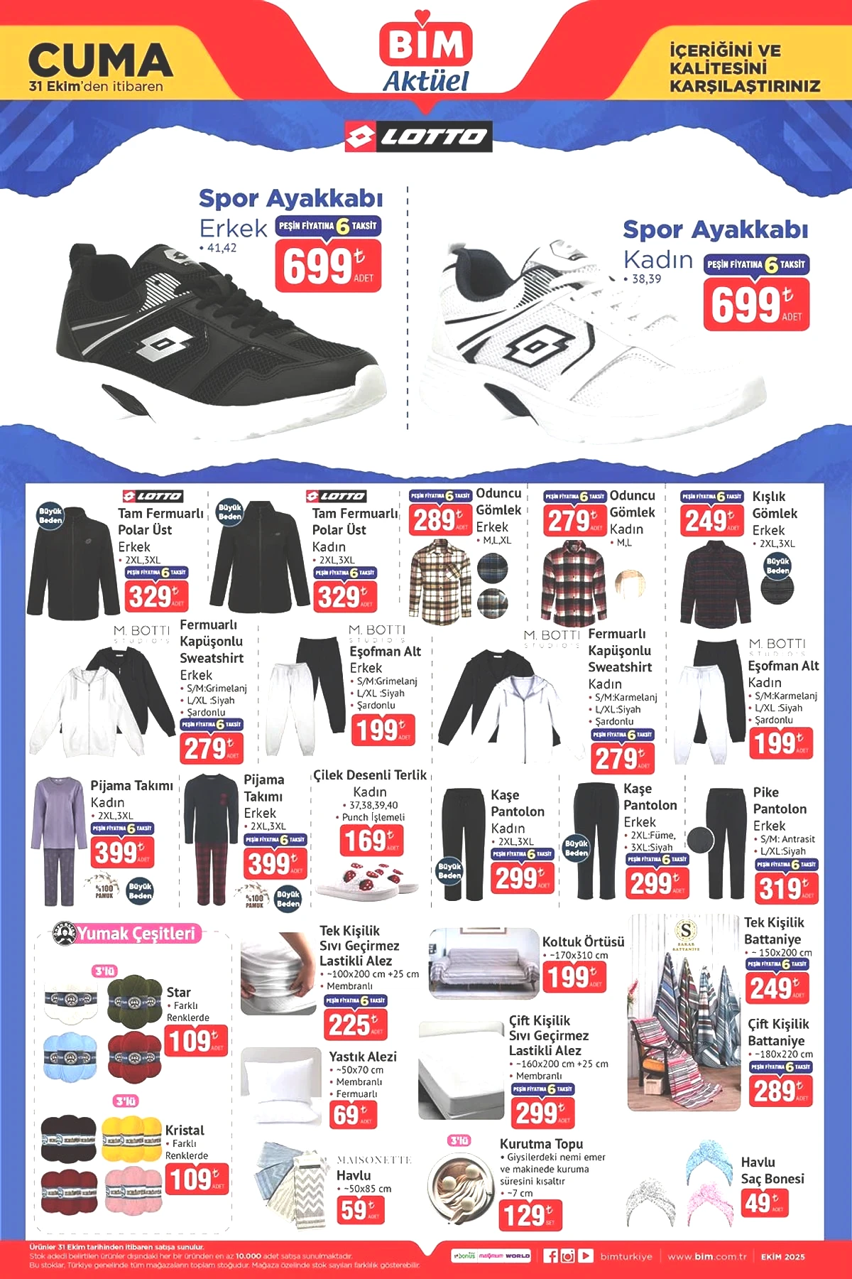 BİM’in 31 Ekim 2025 tarihli aktüel ürün kataloğu, her cebe uygun fırsatlarla dolup taşıyor. Elektronik ürünlerden ev gereçlerine, oyuncaklardan tekstil kategorisine kadar pek çok ürün, 6 taksit avantajı ve sınırlı stoğu ile sunulacak.
